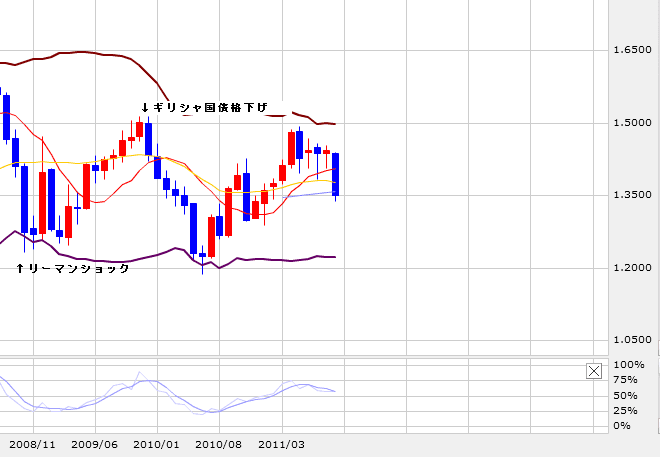 その際に、前政権が発表していた「財政赤字はGDP比4%程度」とする内容が、嘘であったことが明らかになりました。 実際は4%どころか12.5%でした。 (これは後に13.6%に修正されます) 元々ギリシャは左派政権によって国民の人気取り的な政策が行われてて、 かなり放漫な国債乱発が行われていたようですが、それがリーマンショックによる税収の落ち込みで、 財政赤字が膨らんでしまったようです。